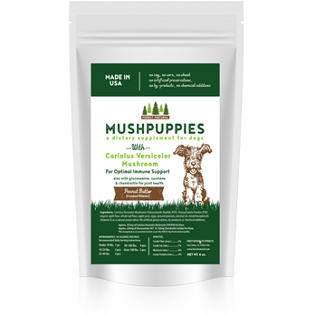 Standard grade immune assistance for your pet. Our Forest Natural Brand has developed a tasty supplement with the immune-supporting Coriolus Versicolor mushroom. Includes Glucosamine, Carotene, and Chondroitin to support bone and joint function. The Coriolus Versicolor Mushroom is an all-natural botanical found to help support the body’s own immune system. It is widely known that the immune system is the body’s first defense against the smallest of issues to the most complicated. There are hundreds of studies worldwide conducted on Coriolus Versicolor on its immune-supporting properties, including such notable institutions as Sloan Kettering Center of New York, MD Anderson Center of Texas, and one completed by the University of Pennsylvania School of Veterinary Medicine. We have been providing our proprietary blend of Coriolus Versicolor for over ten years for both humans and pets. Our process ensures a highly potent strain of Coriolus Versicolor, harvested at the mycelia stage (not the fruited body), and ensures the highest quality of polysaccharide peptide (PSP) and polysaccharide krestin (PSK).
